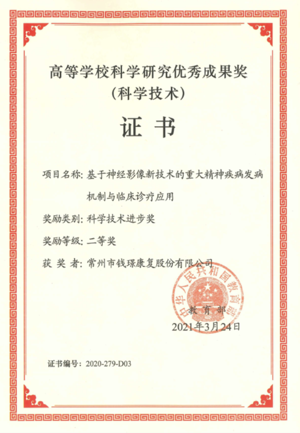 近日,教育部2020年度高等學(xué)校科學(xué)研究優(yōu)秀成果獎(jiǎng)(科學(xué)技術(shù))揭曉,錢璟康復(fù)與暨南大學(xué)、華南師范大學(xué)、廣州市三好計(jì)算機(jī)科技有限公司合作完成的《基于神經(jīng)影像新技術(shù)的重大精神疾病發(fā)病機(jī)制與臨床診療應(yīng)用》項(xiàng)目獲科學(xué)技術(shù)進(jìn)步獎(jiǎng)二等獎(jiǎng)。